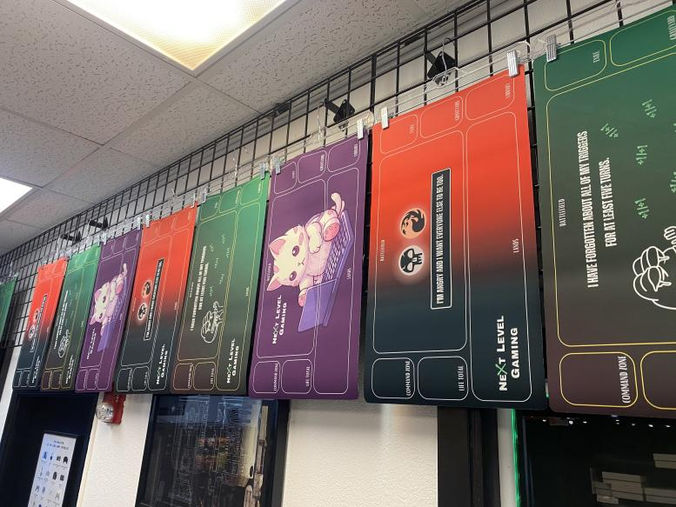 Tables are free to hang out at: opening packs, trading cards with friends, and or playing! Enjoy snacks, drinks, and frozen foods from our snack racks.